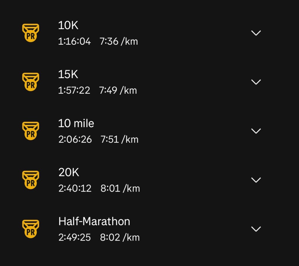 I managed to complete all 3 goals! With a bonus of PR’s for my 10k, 15k, and 10 mile times.